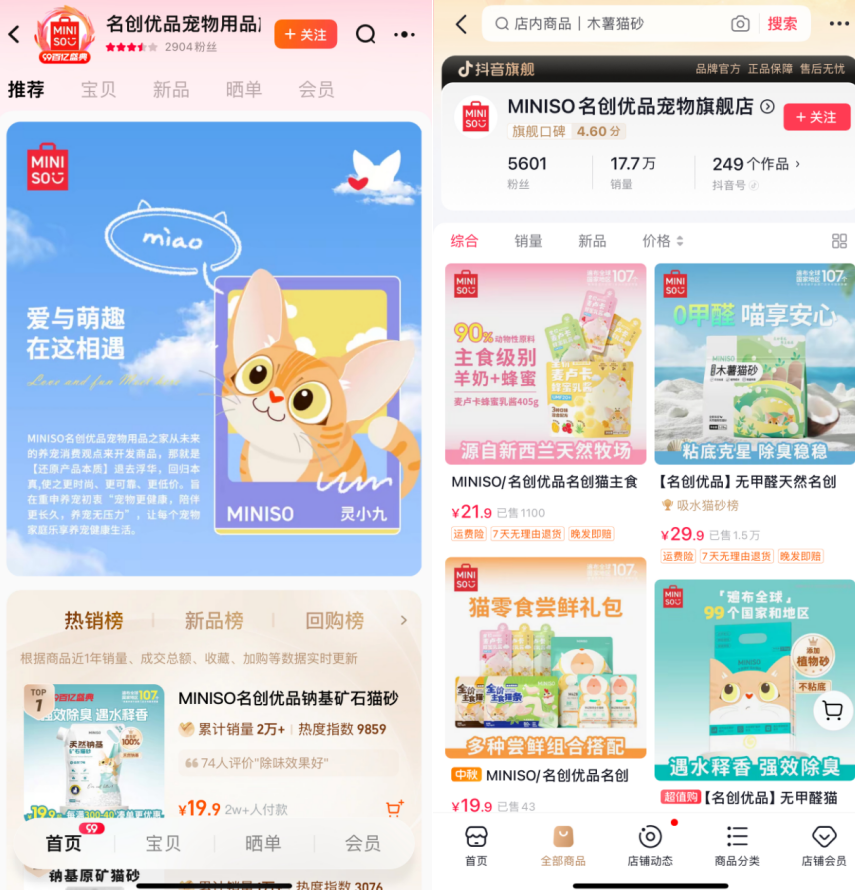 圖源:名創(chuàng)優(yōu)品淘寶、抖音渠道